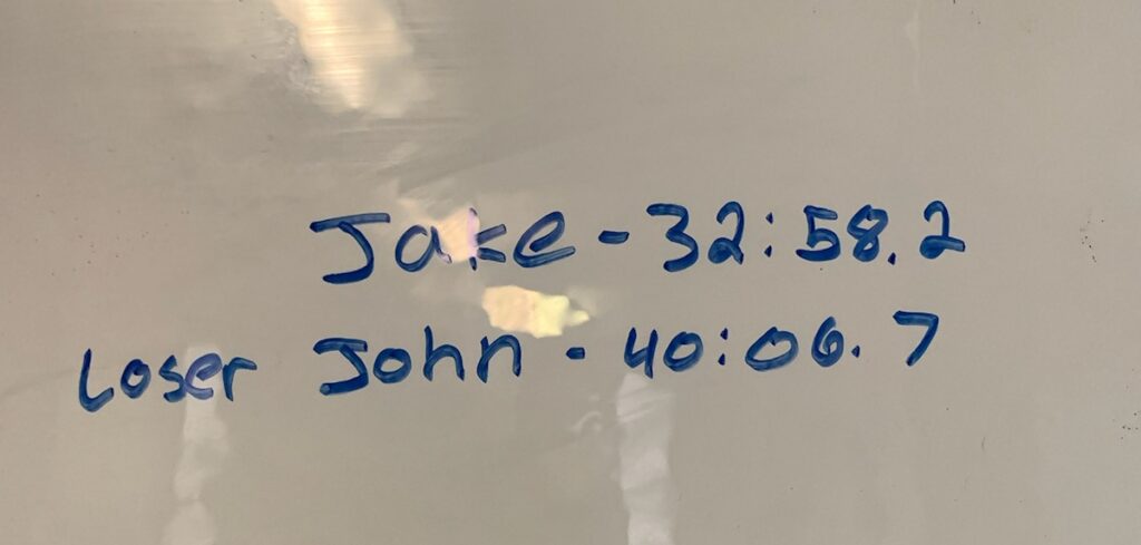 I spent two or more weeks leading up to this event essentially making myself out to be the heel, talking smack against fellow open water swim competitor and Ruthless Performance Coach, Jake Hillibush. As a current NCAA D2 Swimmer, smart money was obviously on Jake as a winner. This John vs. Jake storyline gave me something to shoot for, which is part of my normal ‘talk shit first, figure out a strategy later’ approach to competitive sport.