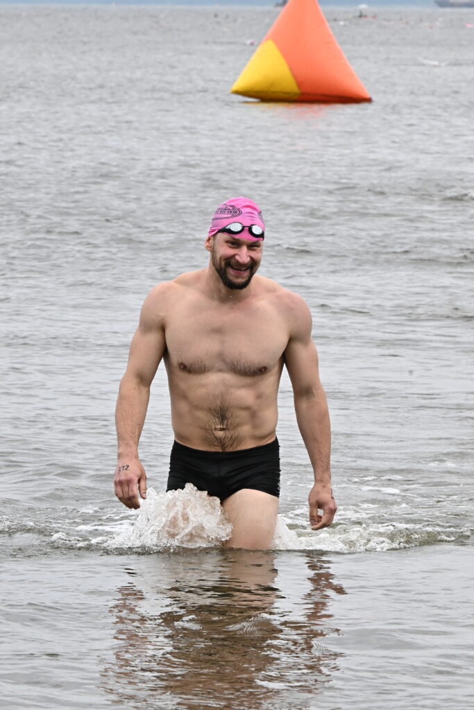 Jake and I began on the starting line next to one another, but since we were so close to the front of the swim, there was so much chaos, I immediately lost Jake right at the start and the high-visibility pink caps worn by all of the swimmers made targeting Jake an impossibility. We’re set for a rematch at next year’s swim and I hope he’s ready for the great open water whoopin’ of 2026.